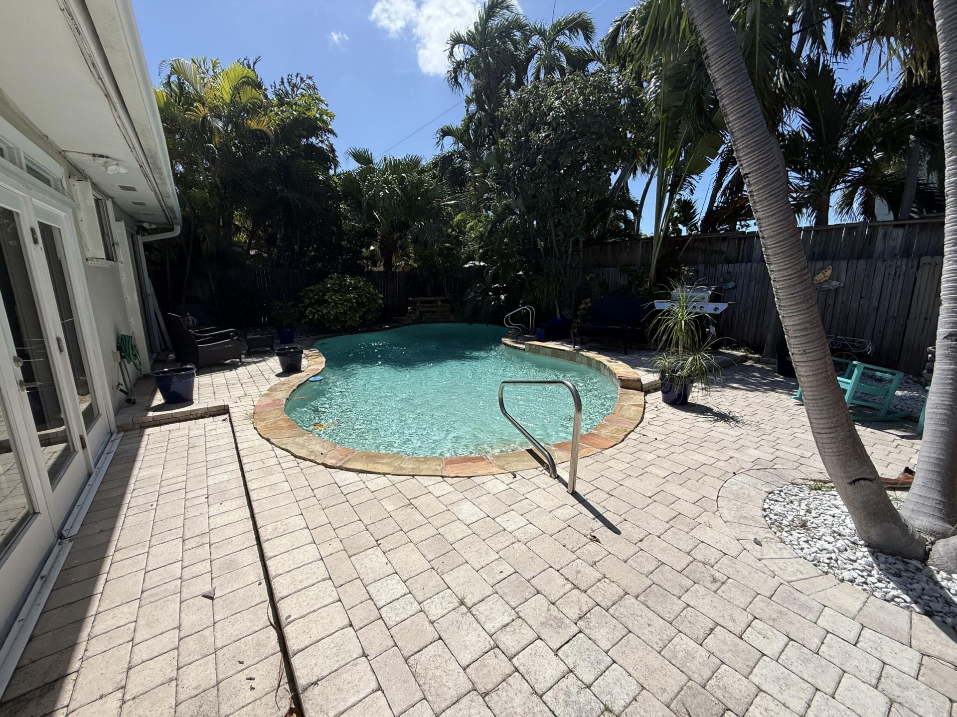 This house has three bedrooms and two baths with a fenced in yard and off street parking.The back yard has a big pool with waterfall plus a outdoor shower.
